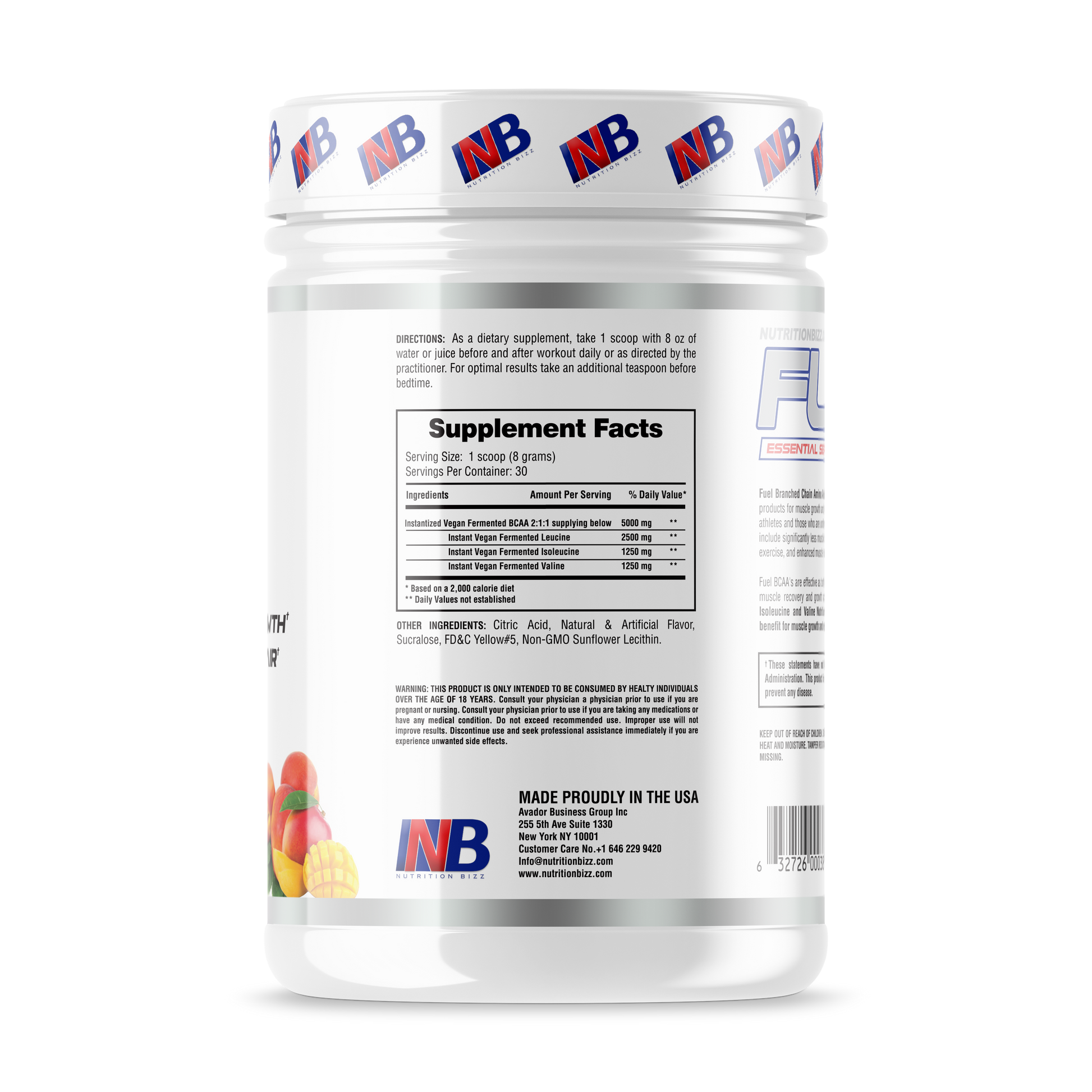Fuel Branched Chain Amino Acids (BCAA’s) are one of the most essential products for muscle growth and repair and are important and necessary for athletes and those who are undergoing weight training. Some of the benefits include significantly less muscle breakdown, delayed muscle soreness after exercise, and enhanced muscle recovery.